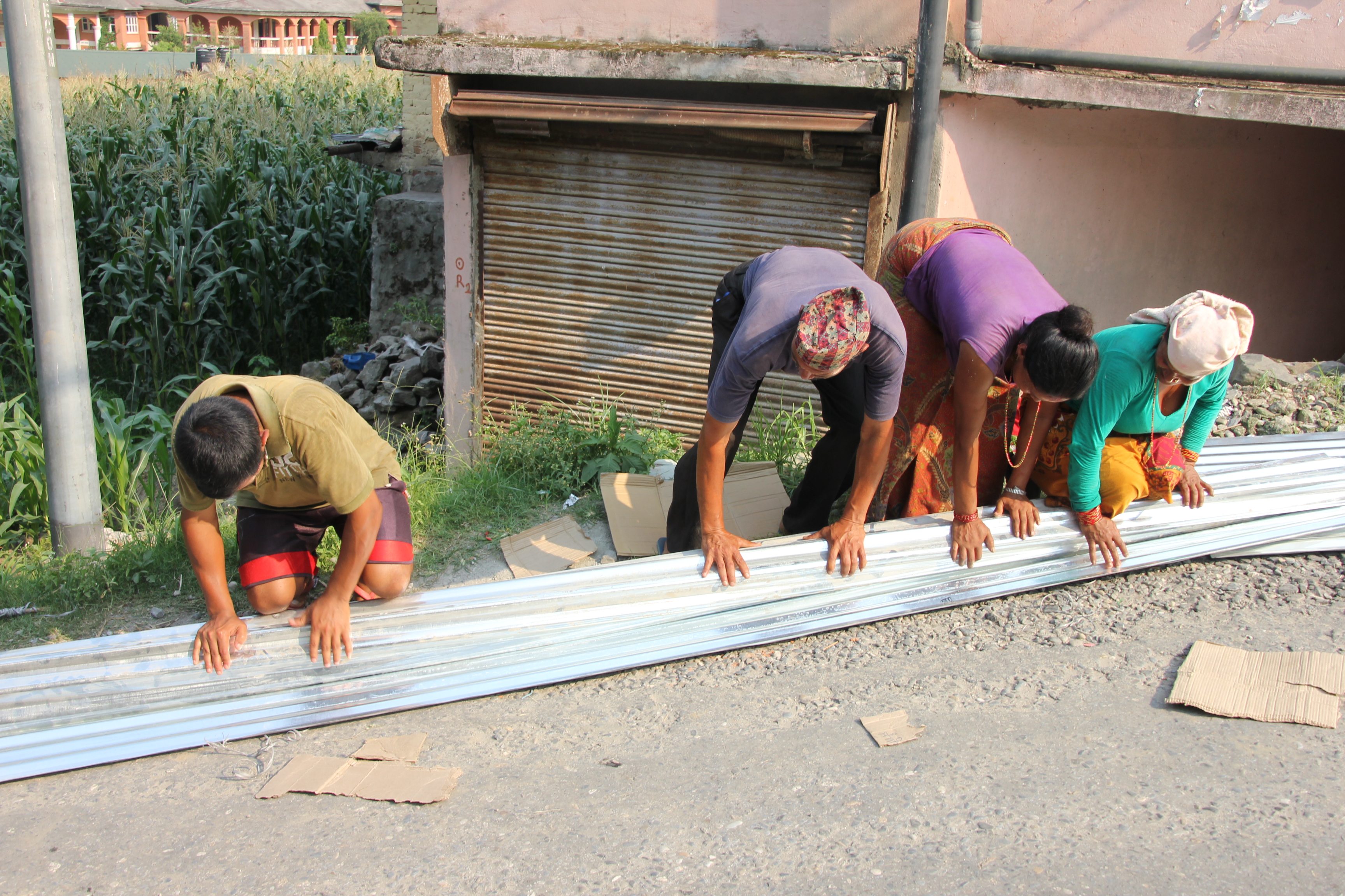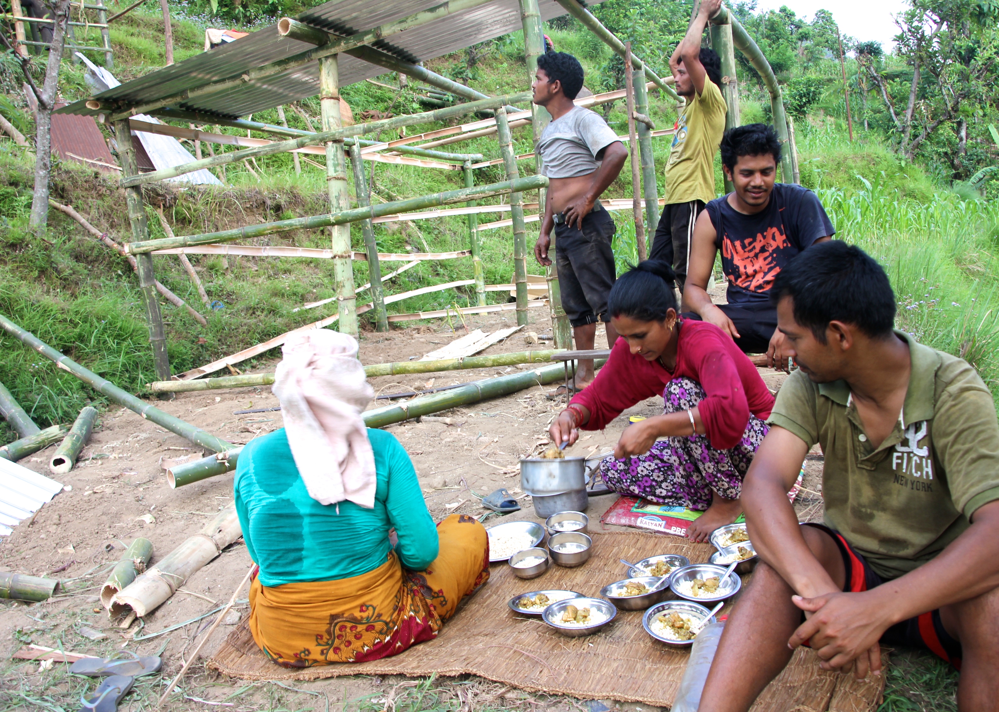 sure why so many of the people in Banjang had made structures with such obvious problems. We decided we’ll do our best to provide day employment for some of the Sirwari people to come up and help the people in Banjang. We’ll see how that goes. In any case, at least these folks will be able to move out of the buffalo sheds and such. I will venture to say that if we had not required that people build before providing these roofing sheets, this is an area where a lot of our tin would likely have sat in the yard or been thrown on top of unsafe houses.